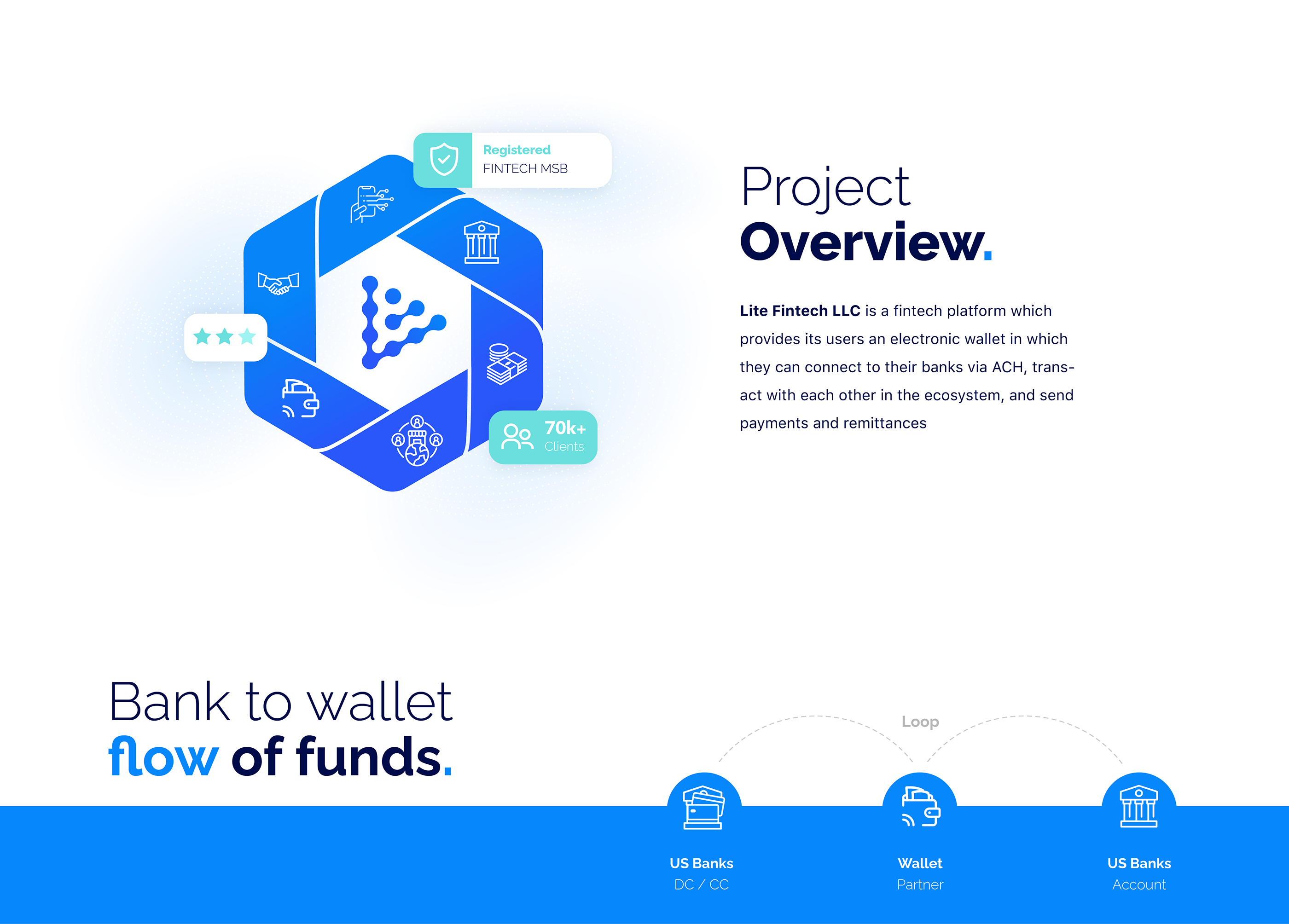 A fintech platform that provides its users an electronic wallet in which they can connect to their banks via ACH, transact with each other in the ecosystem, and send payments and remittances.